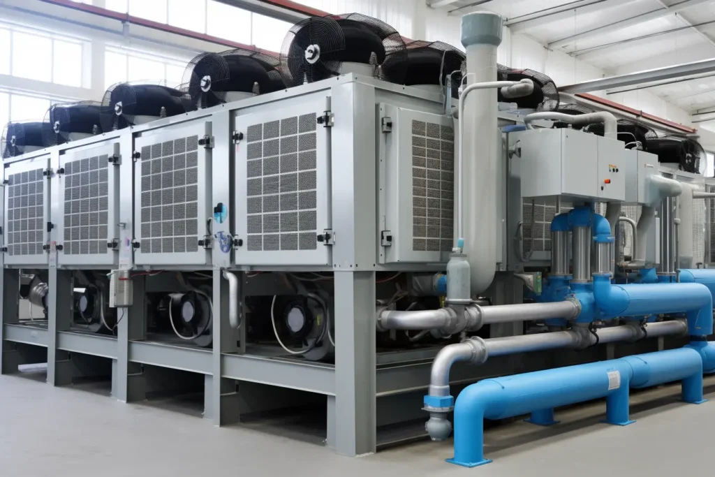 Refrigeration compressors, valves, and pipelines are used in industrial cooling systems to regulate temperature and maintain stable production environments.